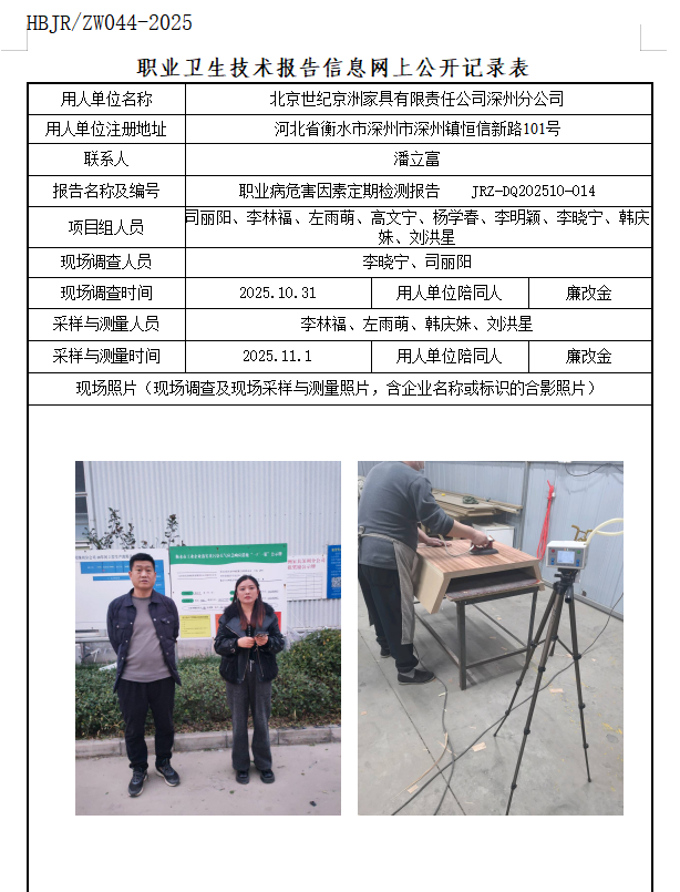 北京世纪京洲家具有限责任公司深州分公司职业卫生技术报告信息网上公开记录表