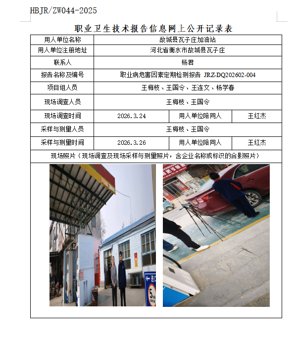 故城县瓦子庄加油站职业卫生技术报告信息网上公开记录表