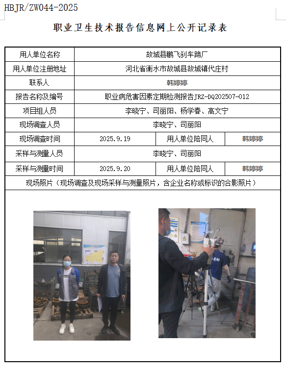 衡水市希杰网格布厂职业卫生技术报告信息网上公开记录表