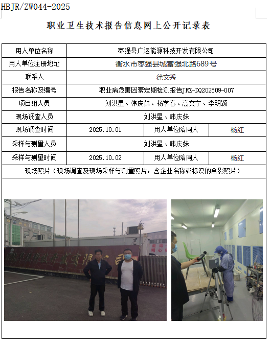 枣强县广运能源科技开发有限公司职业卫生技术报告信息网上公开记录表