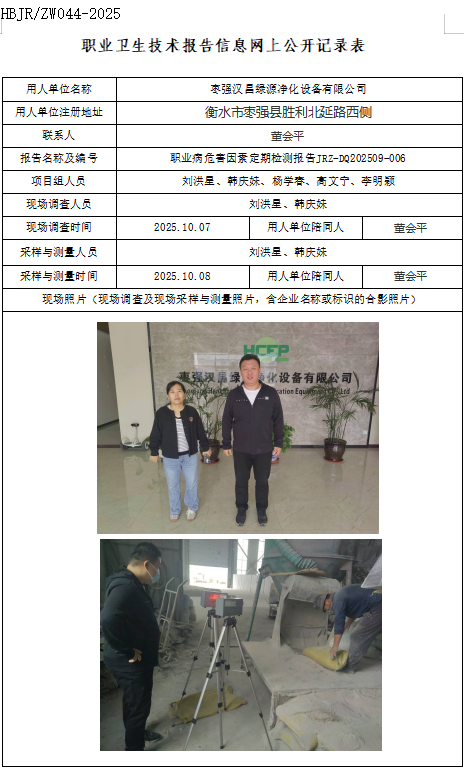 枣强汉昌绿源净化设备有限公司职业卫生技术报告信息网上公开记录表