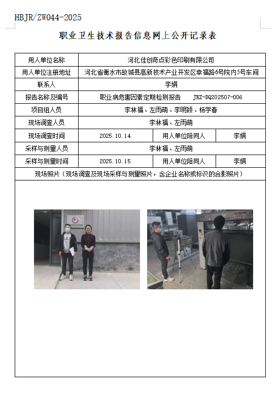 河北佳创奇点彩色印刷有限公司职业卫生技术报告信息网上公开记录表