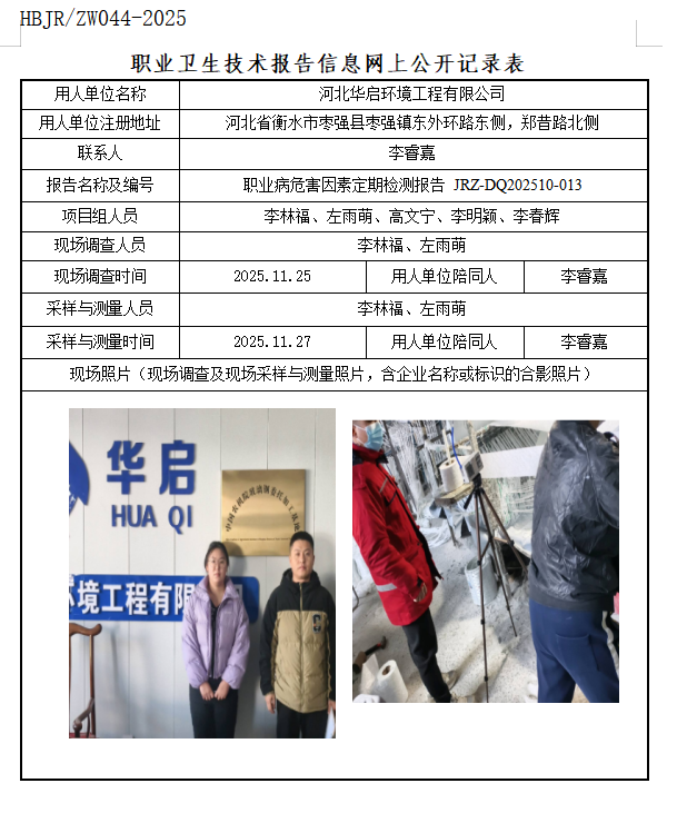 河北华启环境工程有限公司职业卫生技术报告信息网上公开记录表