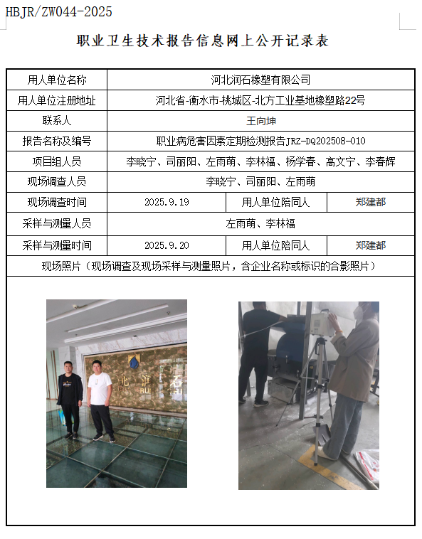 河北润石橡塑有限公司职业卫生技术报告信息网上公开记录表