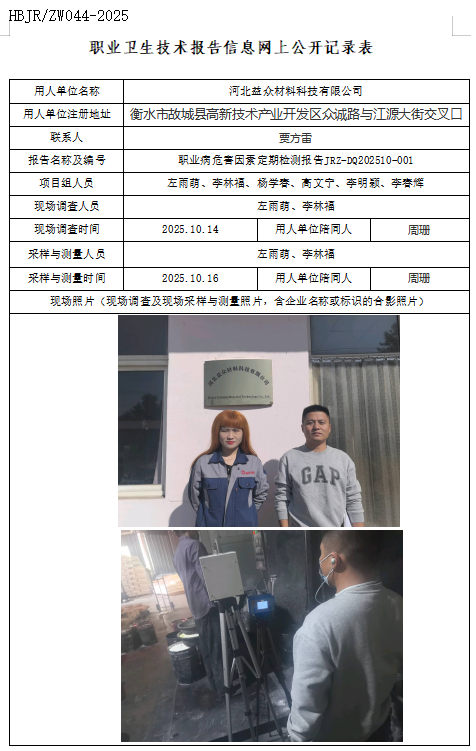 河北益众材料科技有限公司职业卫生技术报告信息网上公开记录表