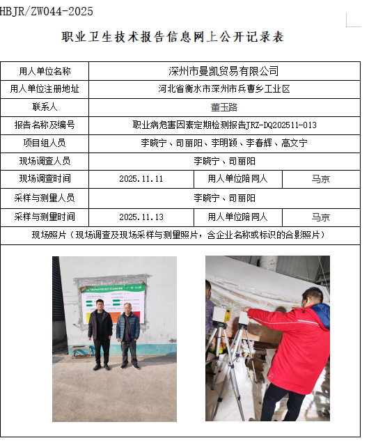深州市曼凯贸易有限公司职业卫生技术报告信息网上公开记录表