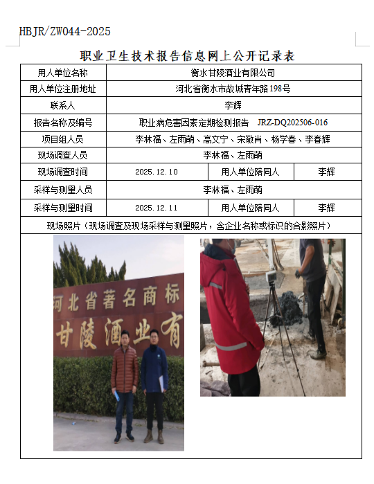衡水甘陵酒业有限公司职业卫生技术报告信息网上公开记录表