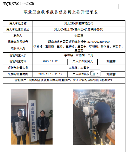 河北彩润科技有限公司职业卫生技术报告信息网上公开记录表