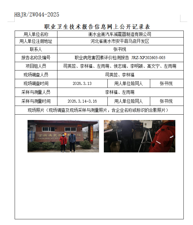 衡水金衡汽车减震器制造有限公司职业卫生技术报告信息网上公开记录表