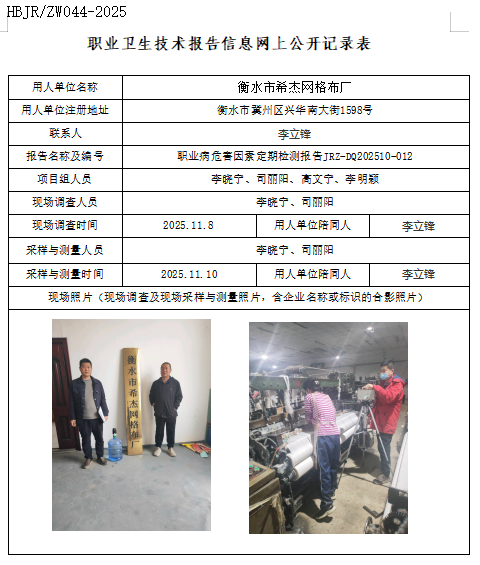 衡水市希杰网格布厂职业卫生技术报告信息网上公开记录表