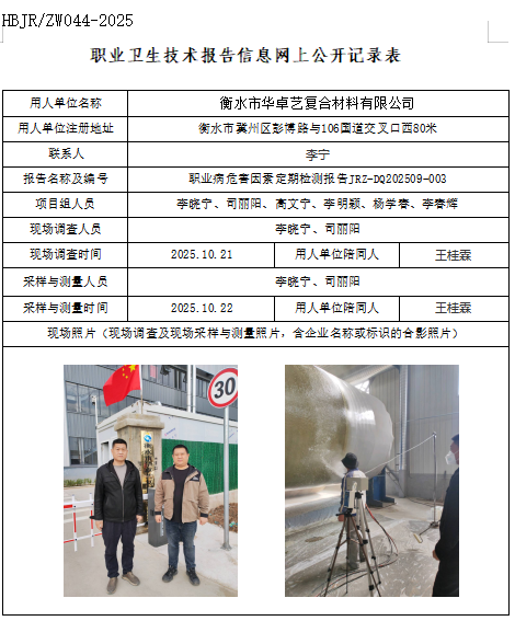 衡水市华卓艺复合材料有限公司职业卫生技术报告信息网上公开记录表