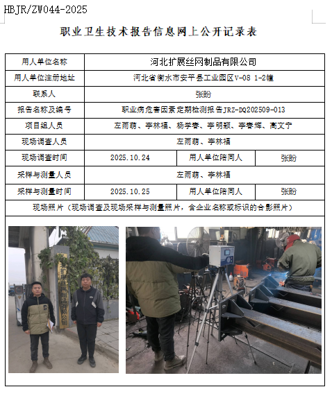 河北扩展丝网制品有限公司职业卫生技术报告信息网上公开记录表