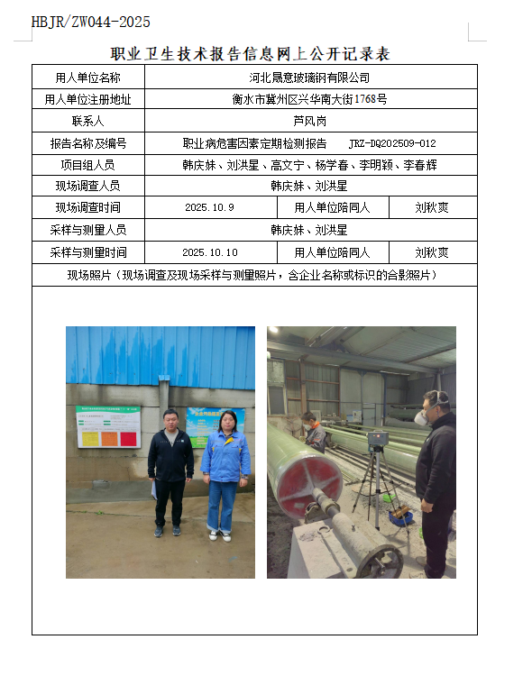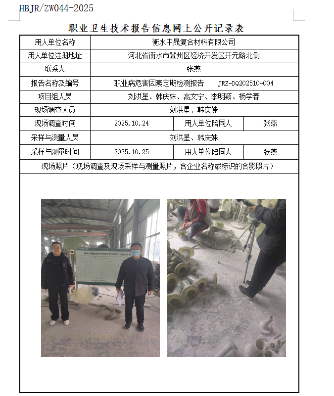 衡水中晟复合材料有限公司职业卫生技术报告信息网上公开记录表
