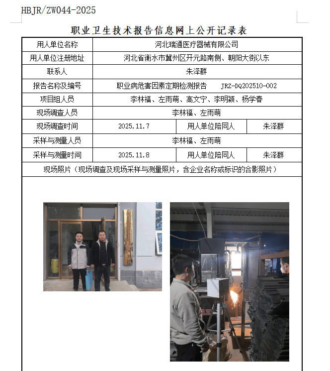 河北瑞通医疗器械有限公司职业卫生技术报告信息网上公开记录表