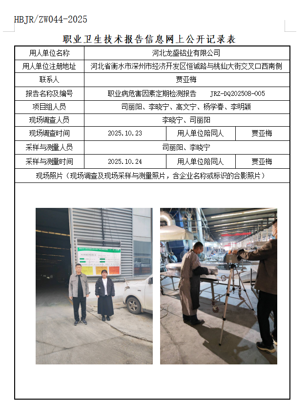 河北龙盛铝业有限公司职业卫生技术报告信息网上公开记录表