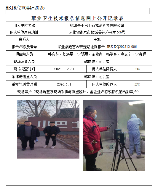 故城县小巴士新能源科技有限公司职业卫生技术报告信息网上公开记录表