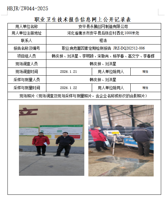 安平县永腾丝网制造有限公司职业卫生技术报告信息网上公开记录表