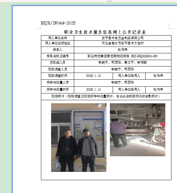 安平县中良五金制品有限公司职业卫生技术报告信息网上公开记录表