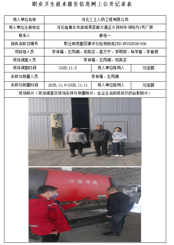 河北三土人防工程有限公司职业卫生技术报告信息网上公开记录表