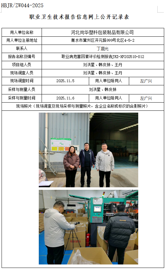 河北尚华塑料包装制品有限公司职业卫生技术报告信息网上公开记录表