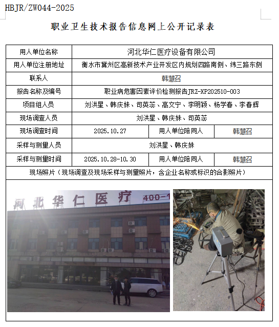 河北华仁医疗设备有限公司职业卫生技术报告信息网上公开记录表