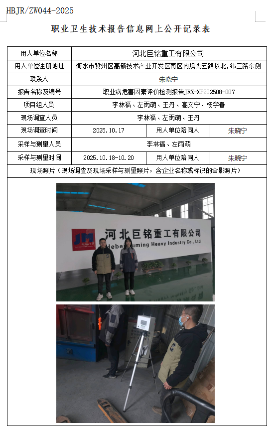 河北巨铭重工有限公司职业卫生技术报告信息网上公开记录表