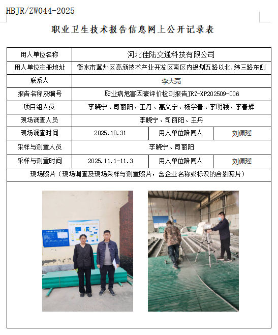 河北佳陆交通科技有限公司职业卫生技术报告信息网上公开记录表