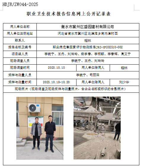 衡水市冀州区盛园建材有限公司职业卫生技术报告信息网上公开记录表