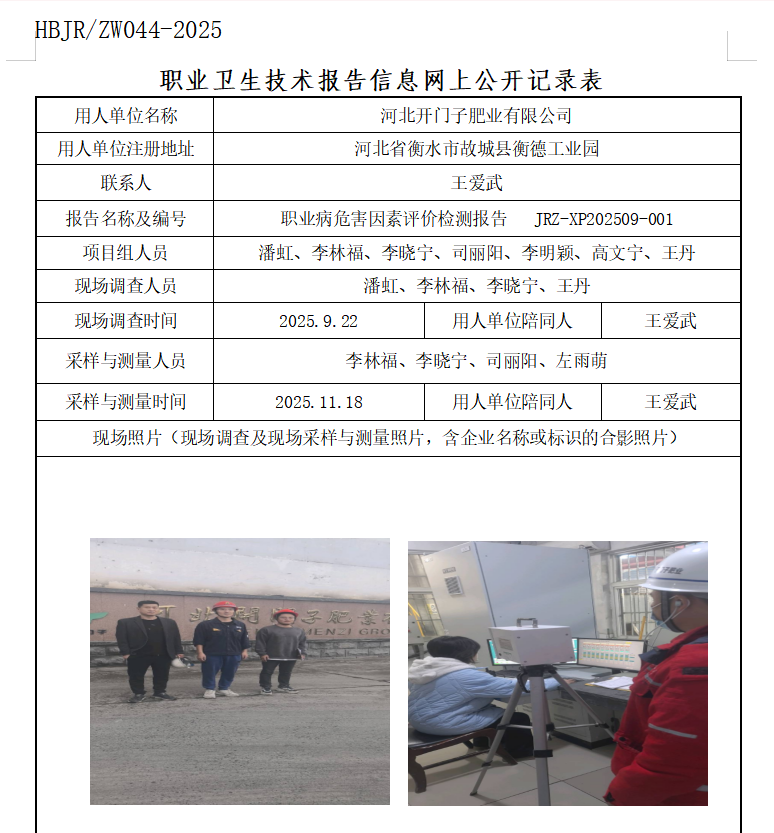 河北开门子肥业有限公司职业卫生技术报告信息网上公开记录表