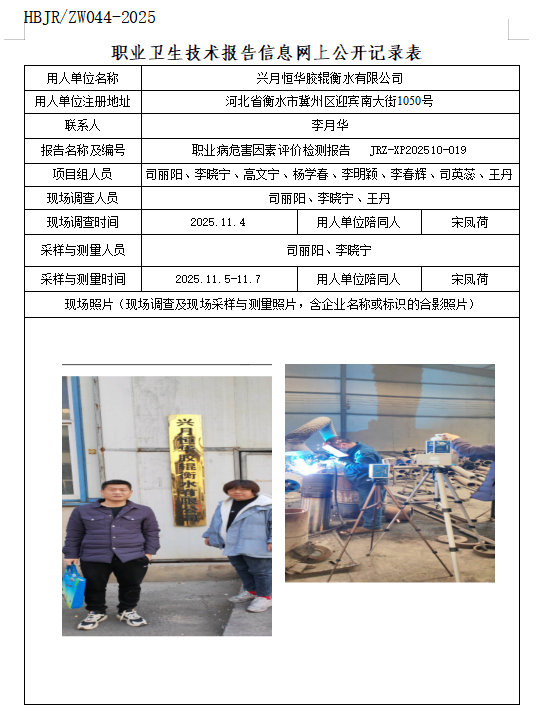 兴月恒华胶辊衡水有限公司职业卫生技术报告信息网上公开记录表