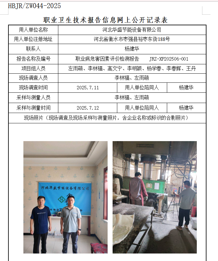 河北华盛节能设备有限公司职业卫生技术报告信息网上公开记录表