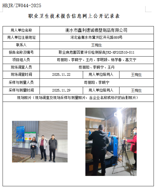 衡水市鑫利德诚橡塑制品有限公司职业卫生技术报告信息网上公开记录表